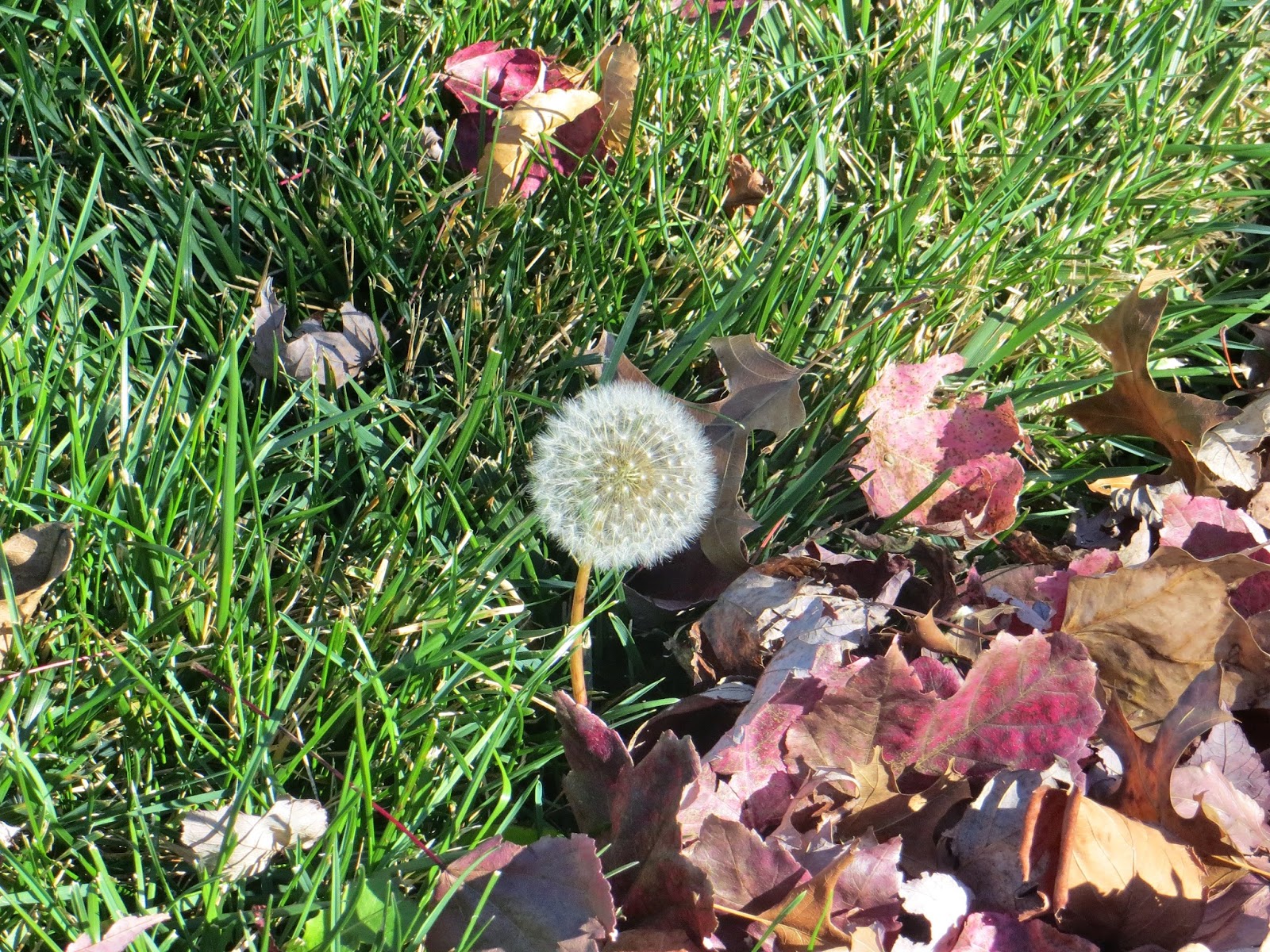 A tree (in front of the fuller one) had only one big leaf left on it, all the way at its top. Can you see it?